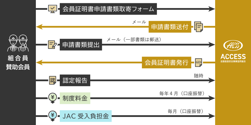 ACCESSの会員証明書発行及び受入負担金の収納代行についてはACCESS事務局までお問い合わせください。